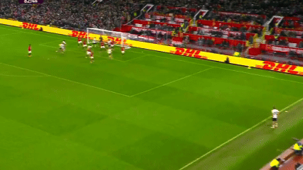 易边再战,第58分钟。阿玛德右路突破后回做,卡塞米罗迎球爆射击中防守球员弹起,达洛特背身拿球后转身抽射破门,曼联1-0领先;老特拉福德现场瞬间沸腾,似乎胜利已经向曼联招手。